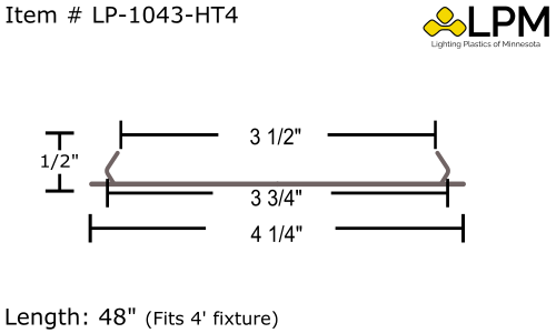 LPM replacement lens #LP-1043-HT4 is 4 1/4″ Wide by 1/2″ High x 48″ long.