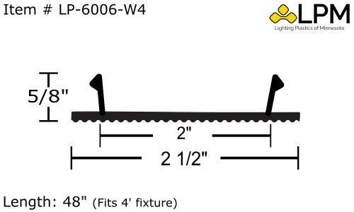 LPM replacement lens #LP-6006-W4 is 2 1/2″ MAX Wide by 5/8″ High x 48″ long.